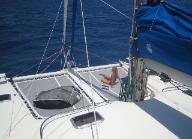 40hp Volvo engines, 9kw Onan generator, AC, Spectra watermaker (29 gal/hr), Kiss wind generator, 3 – 85wt solar panels, Simrad CR44 chartplotter/radar 10” color screen, Iridium Sat Phone, Dell PC with OCENS weather & mail software, VHF, and the what seems like dozens of other “things” that just seem to go along with a boat.